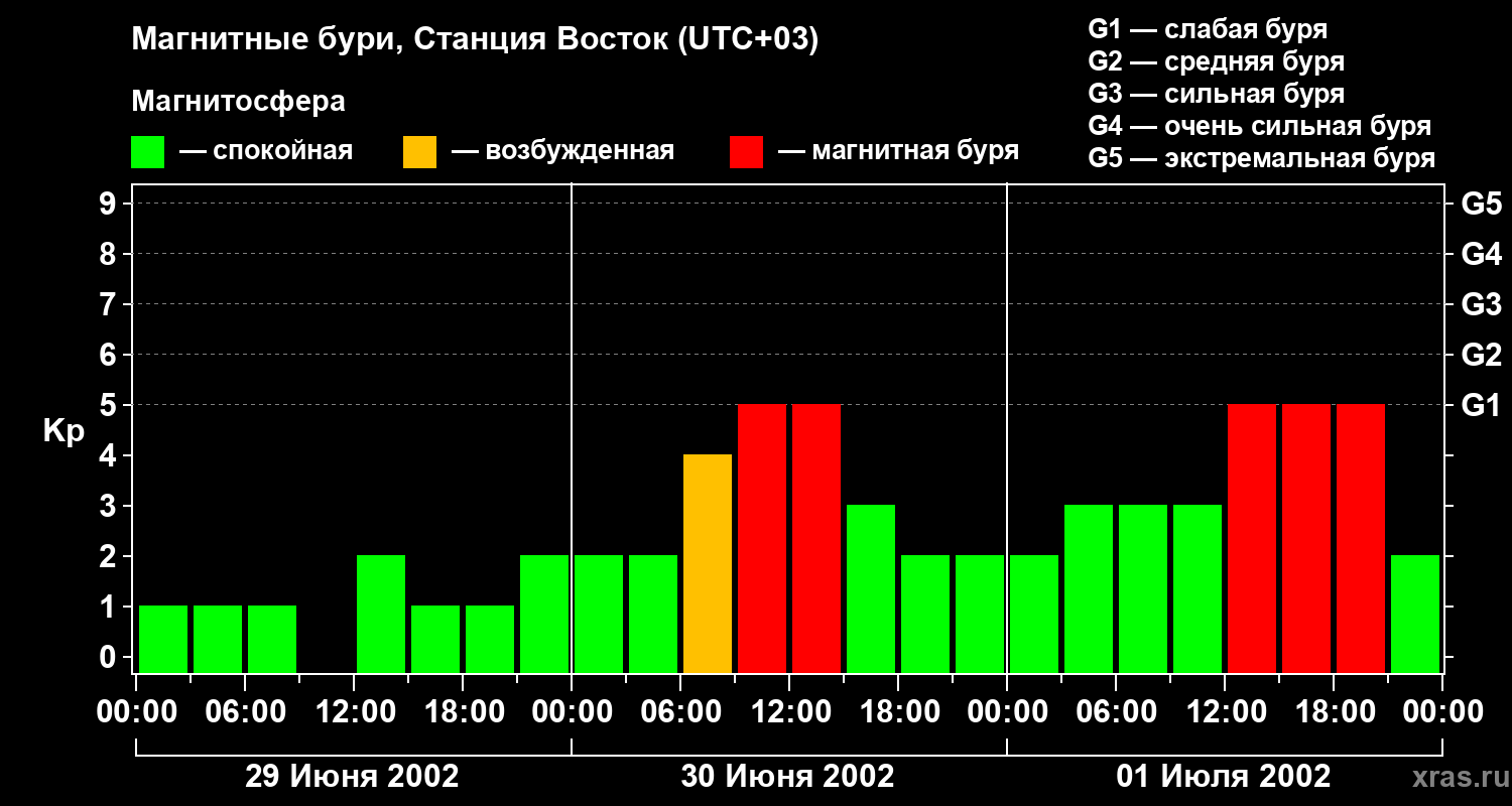 Магнитные бури локации Станция Восток — 1 июля 2002 года