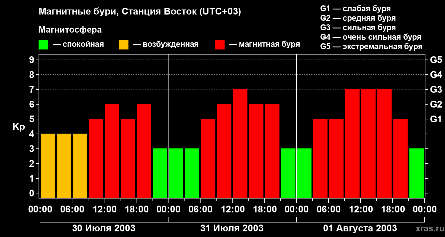 Магнитные бури локации Станция Восток 1 августа 2003 года
