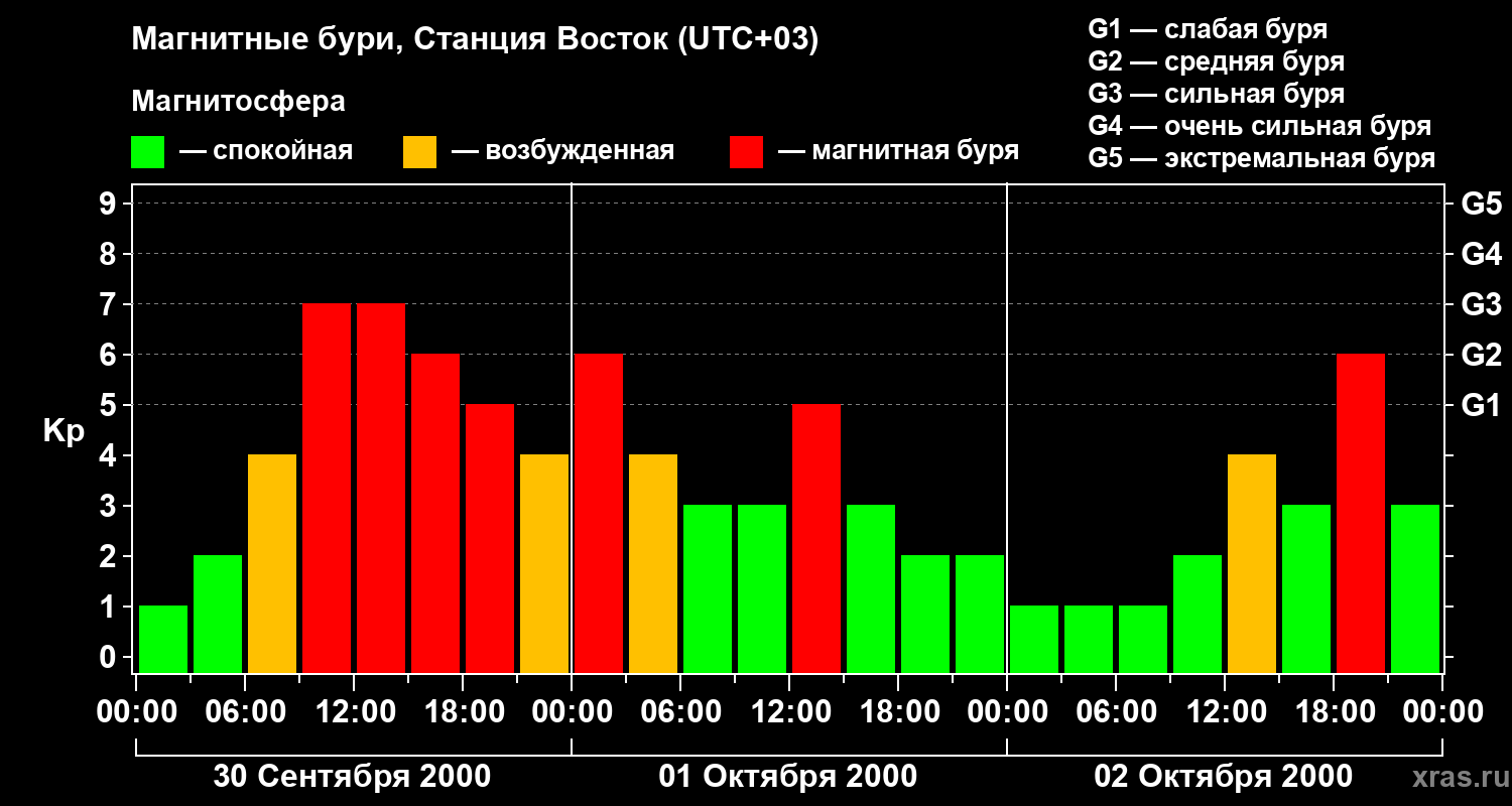 Магнитные бури локации Станция Восток 2 октября 2000 года
