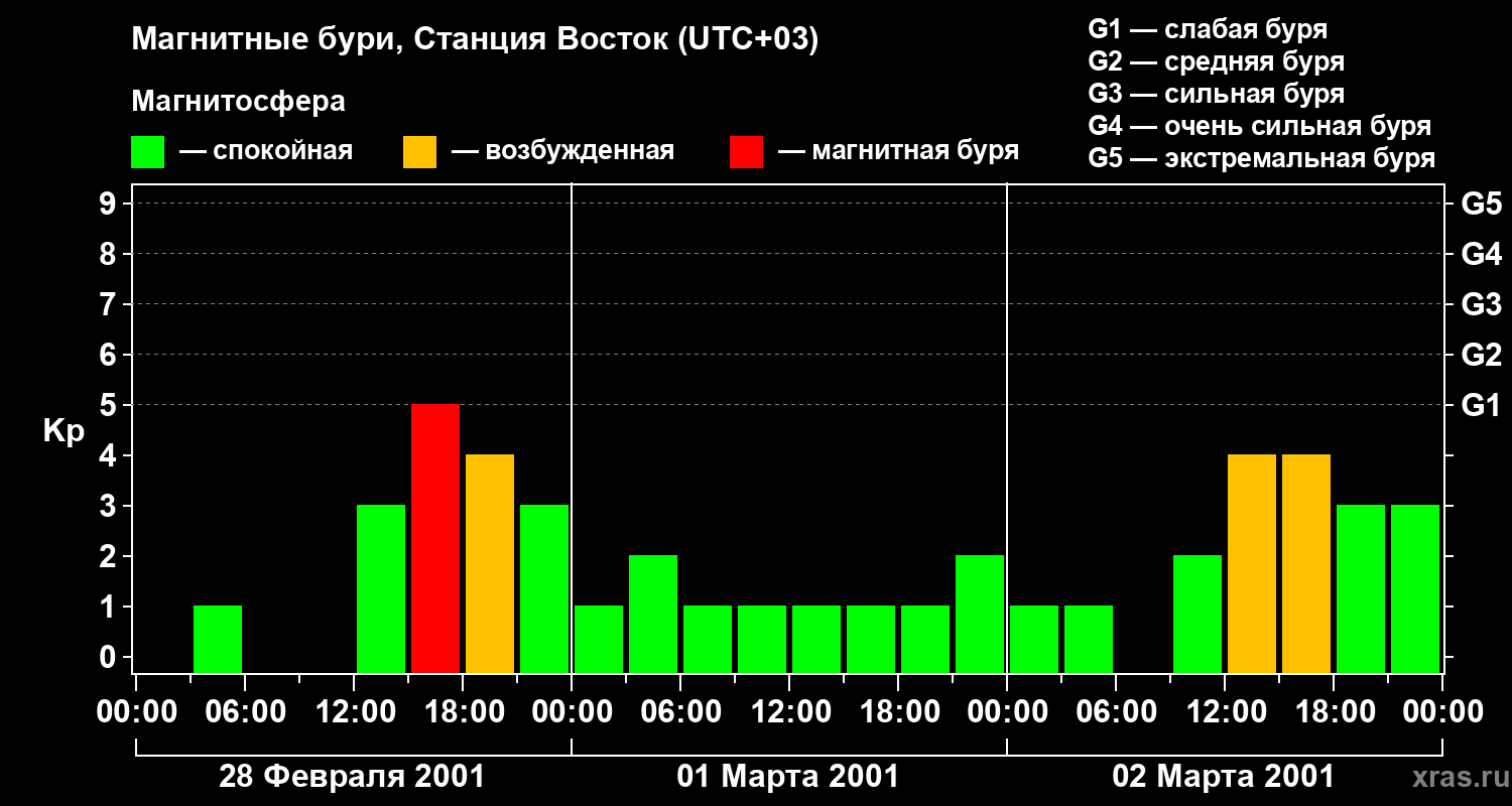 Магнитные бури локации Станция Восток — 2 марта 2001 года