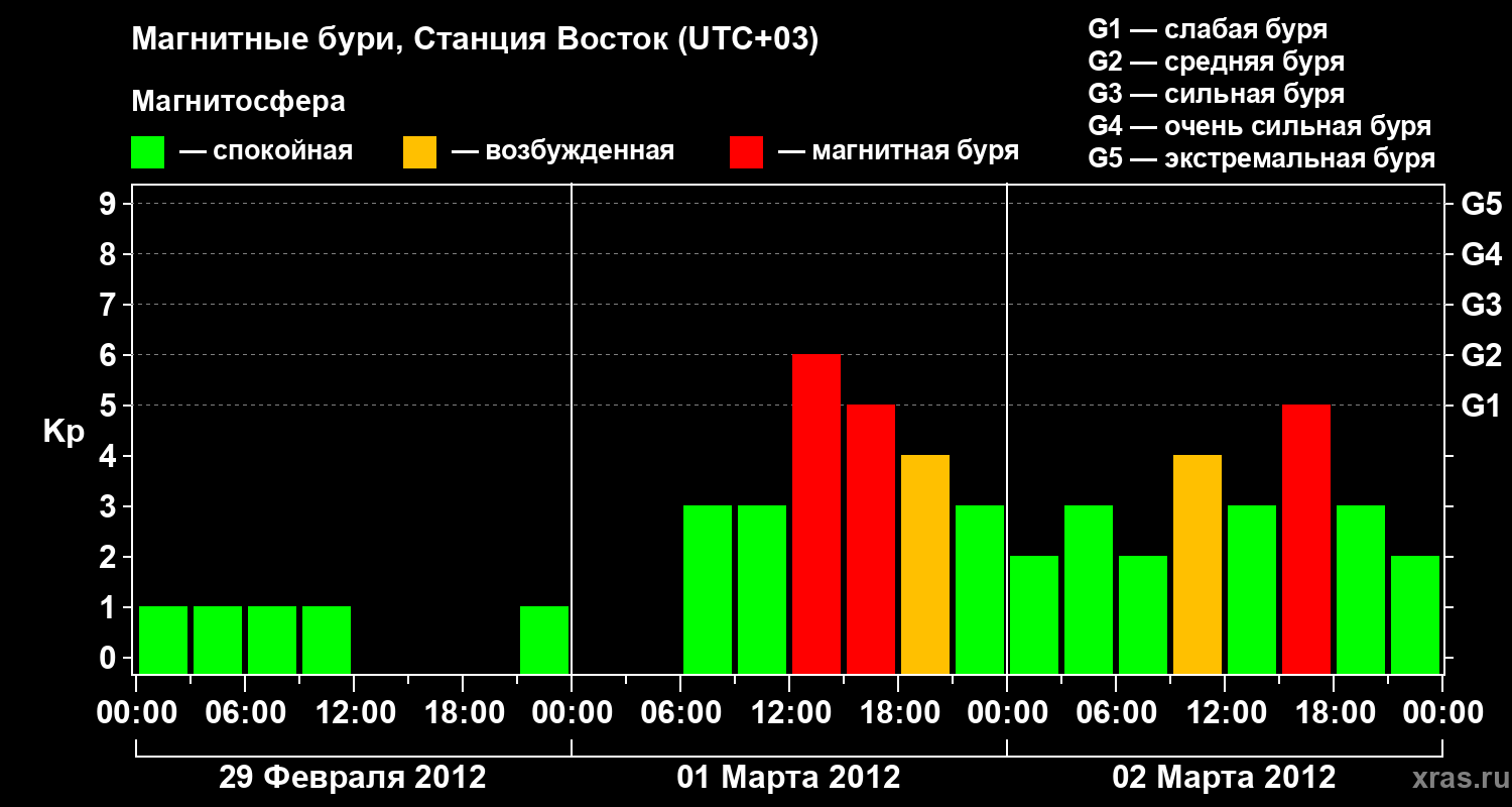 Магнитные бури локации Станция Восток — 2 марта 2012 года