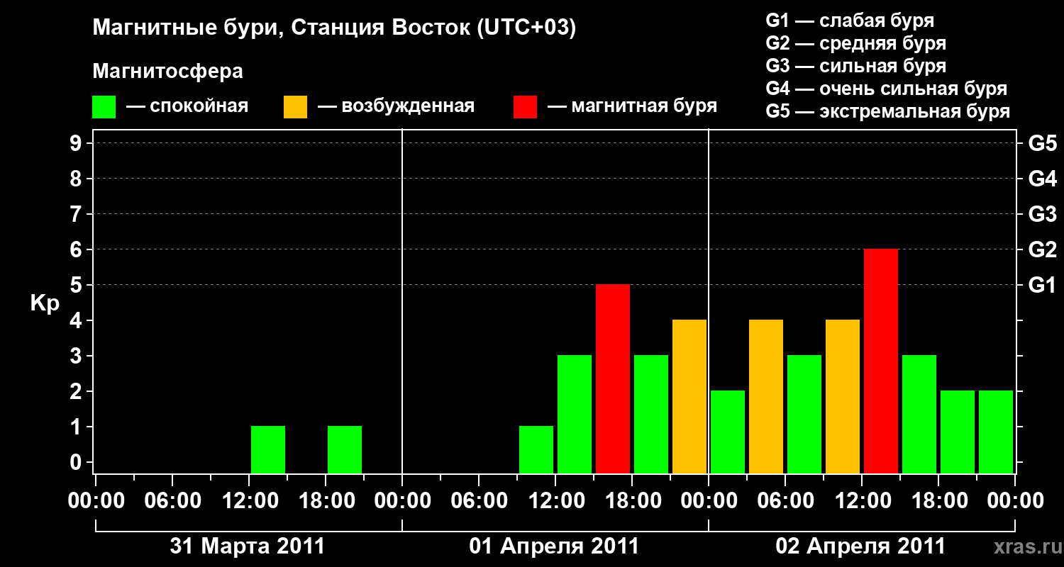 Магнитные бури локации Станция Восток — 2 апреля 2011 года