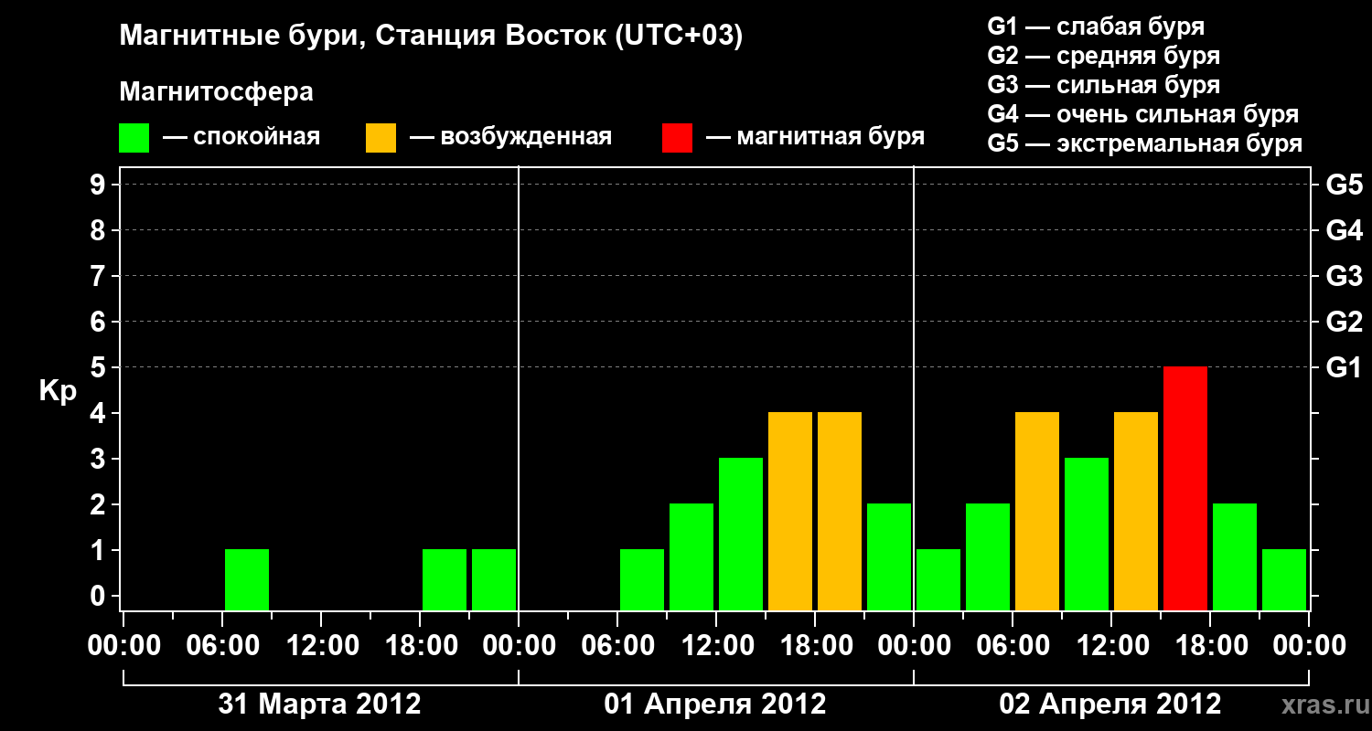 Магнитные бури локации Станция Восток — 2 апреля 2012 года