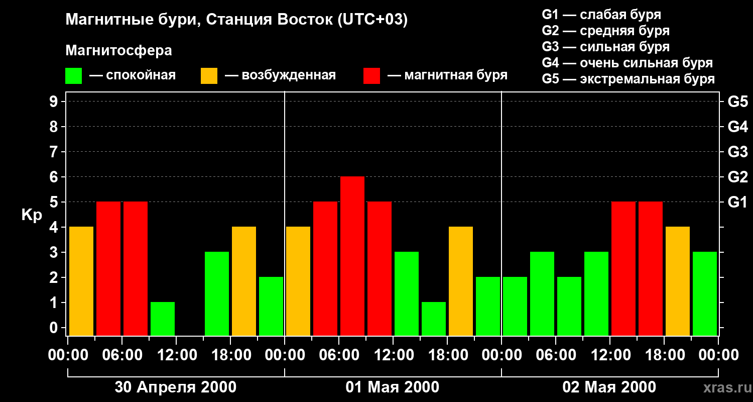 Магнитные бури локации Станция Восток — 2 мая 2000 года