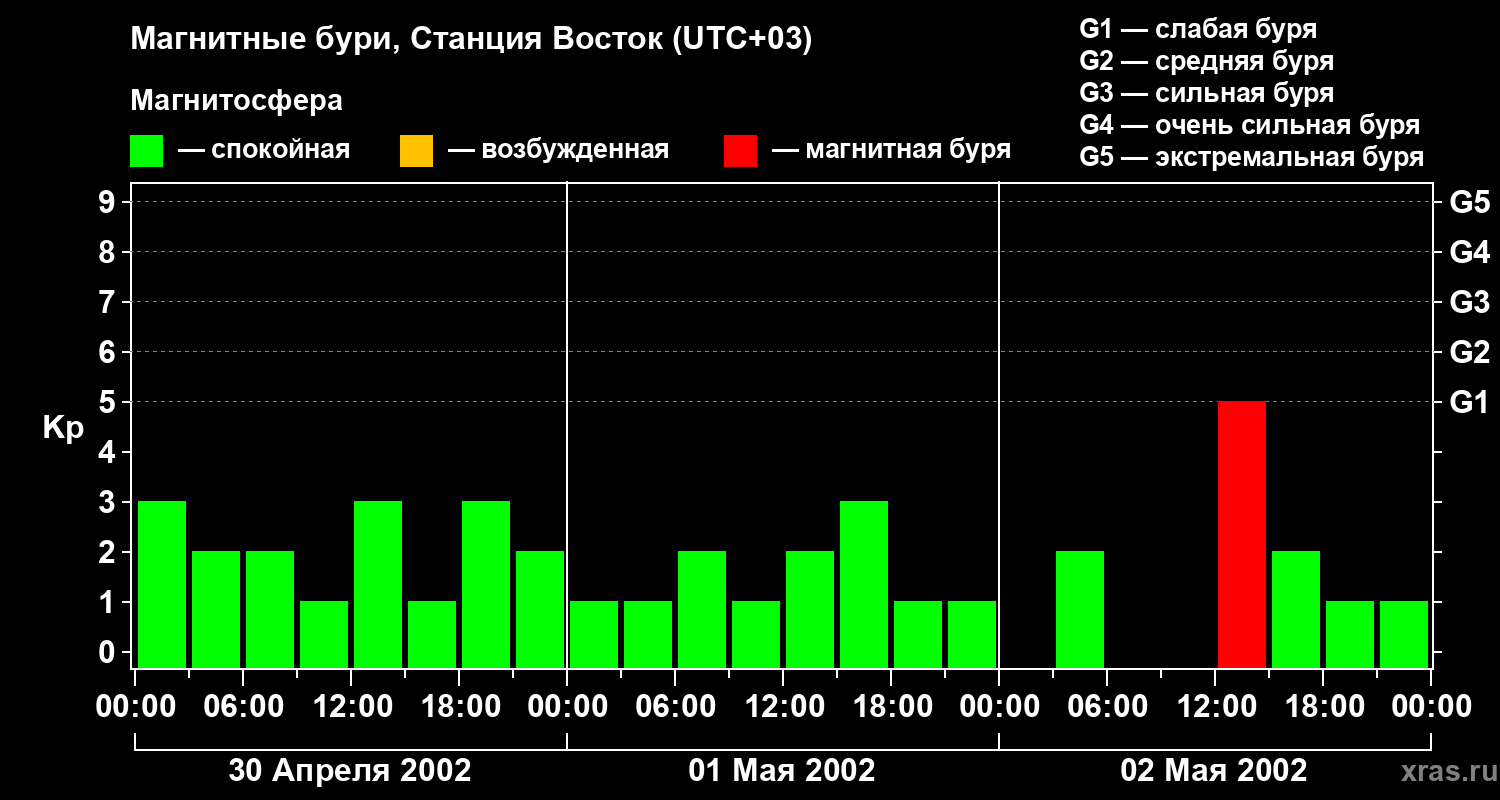 Магнитные бури локации Станция Восток — 2 мая 2002 года