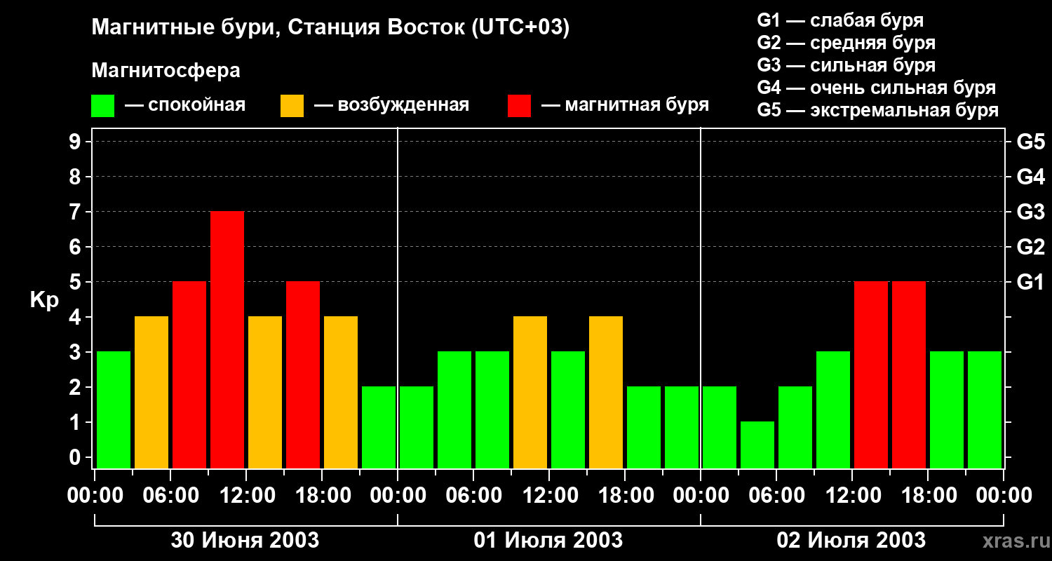 Магнитные бури локации Станция Восток — 2 июля 2003 года
