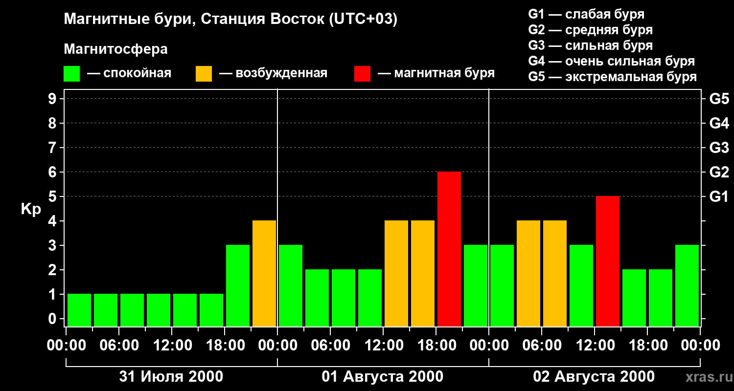 Магнитные бури локации Станция Восток 2 августа 2000 года