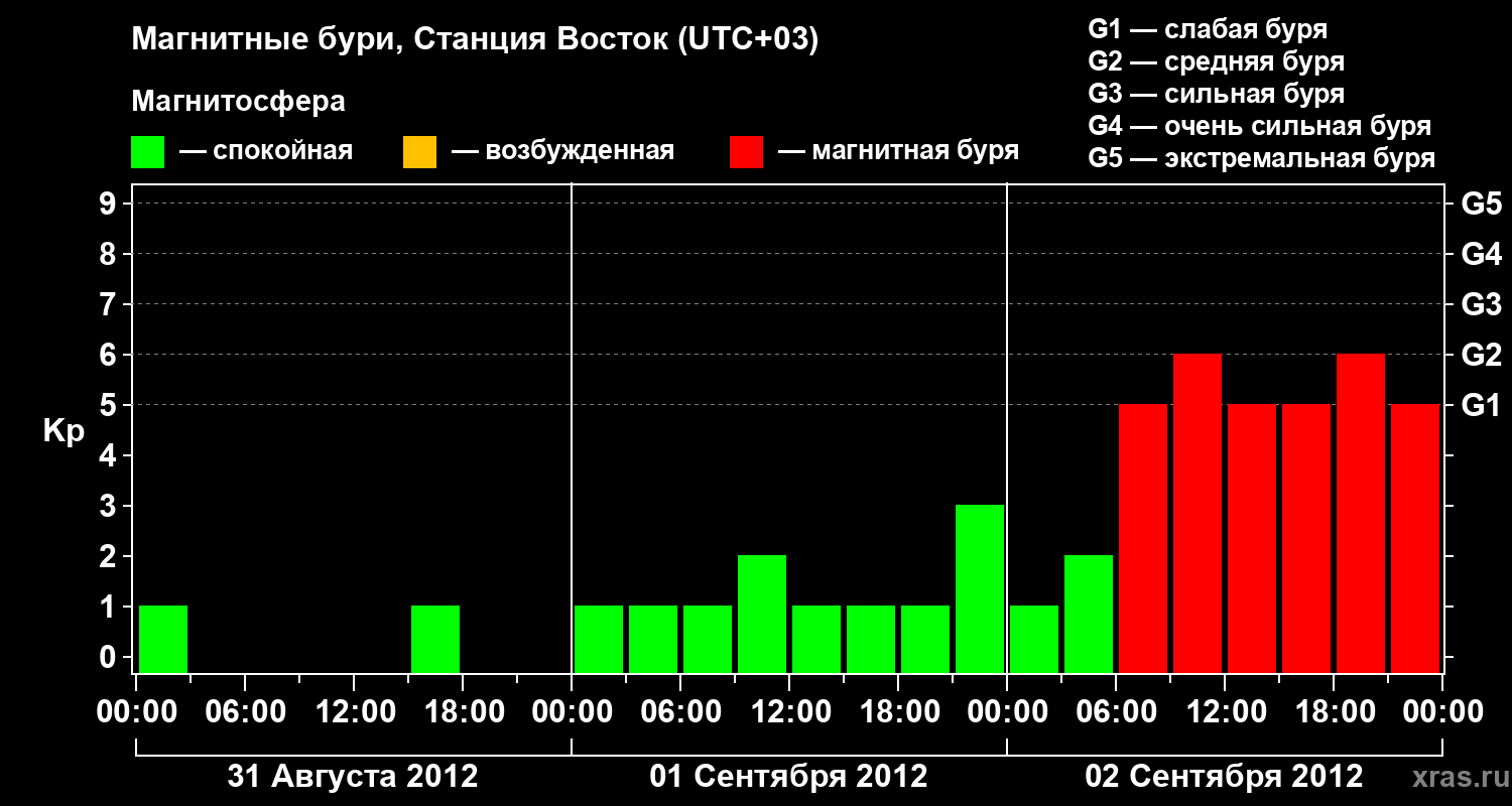 Магнитные бури локации Станция Восток — 2 сентября 2012 года