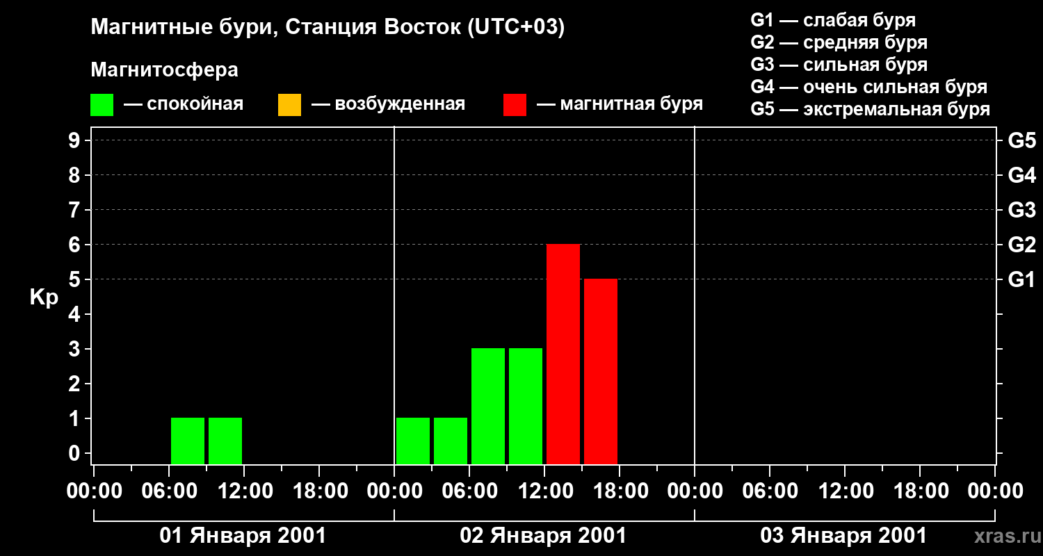 Магнитные бури локации Станция Восток — 3 января 2001 года