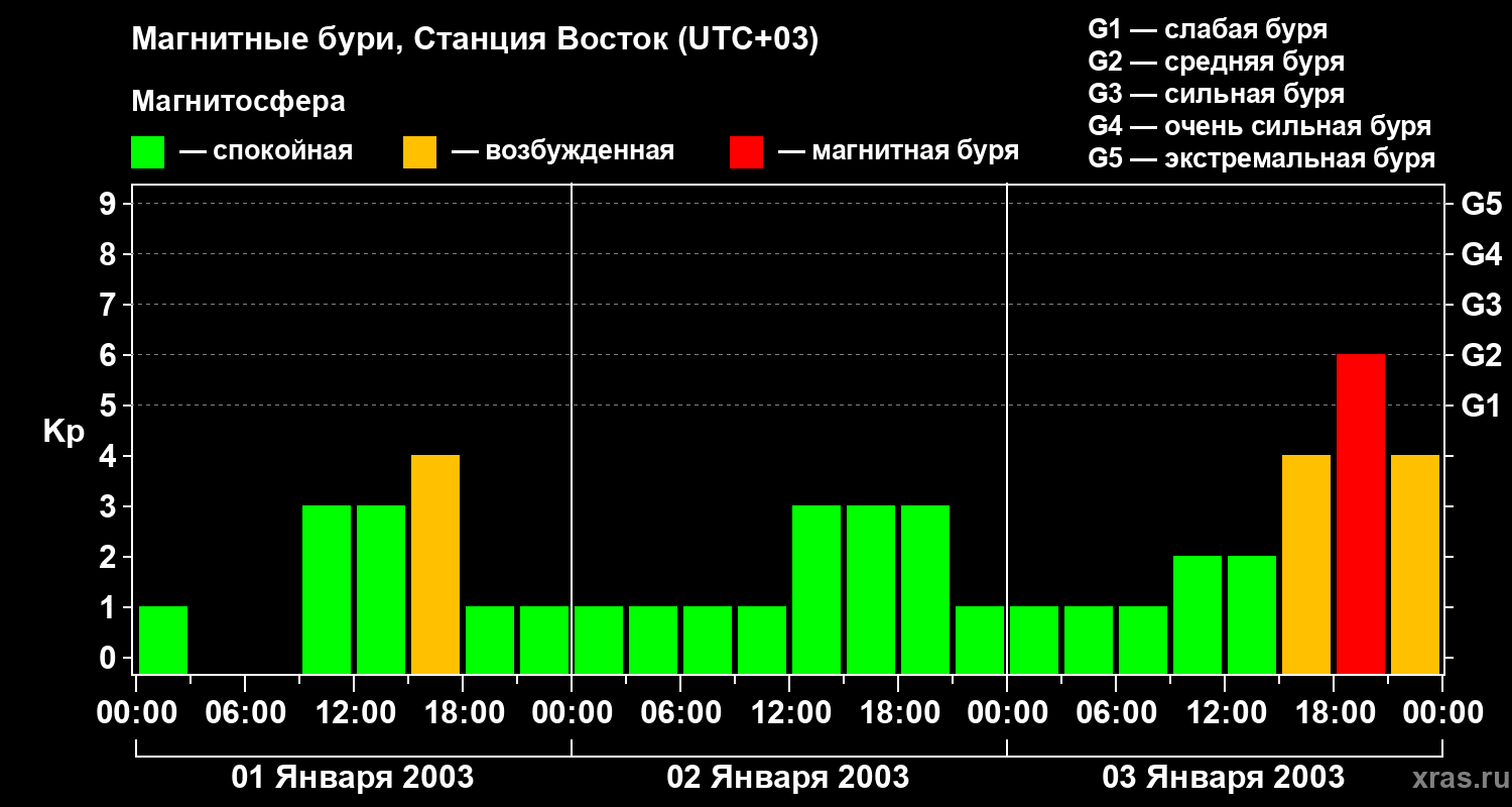 Магнитные бури локации Станция Восток — 3 января 2003 года