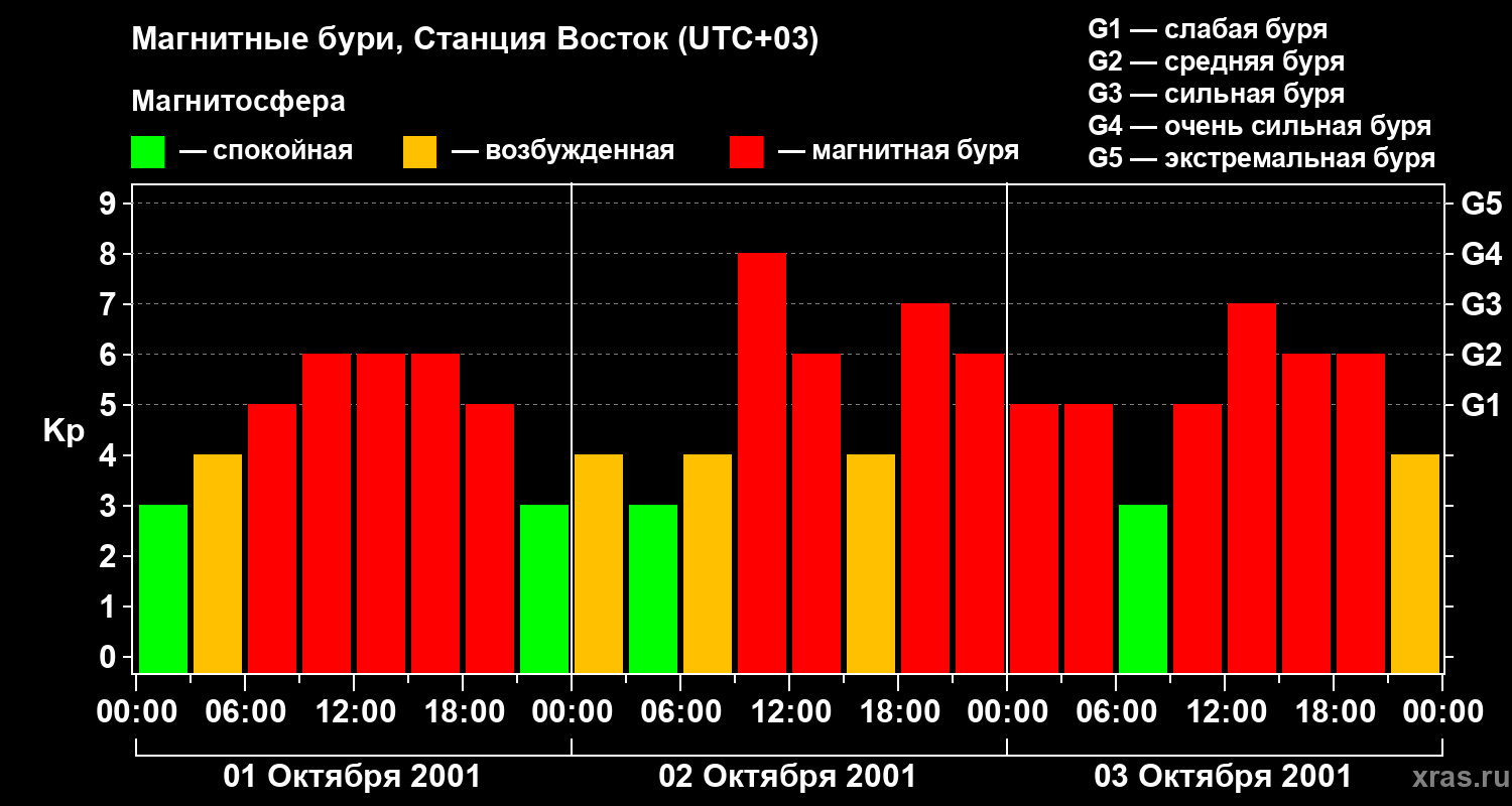 Магнитные бури локации Станция Восток — 3 октября 2001 года