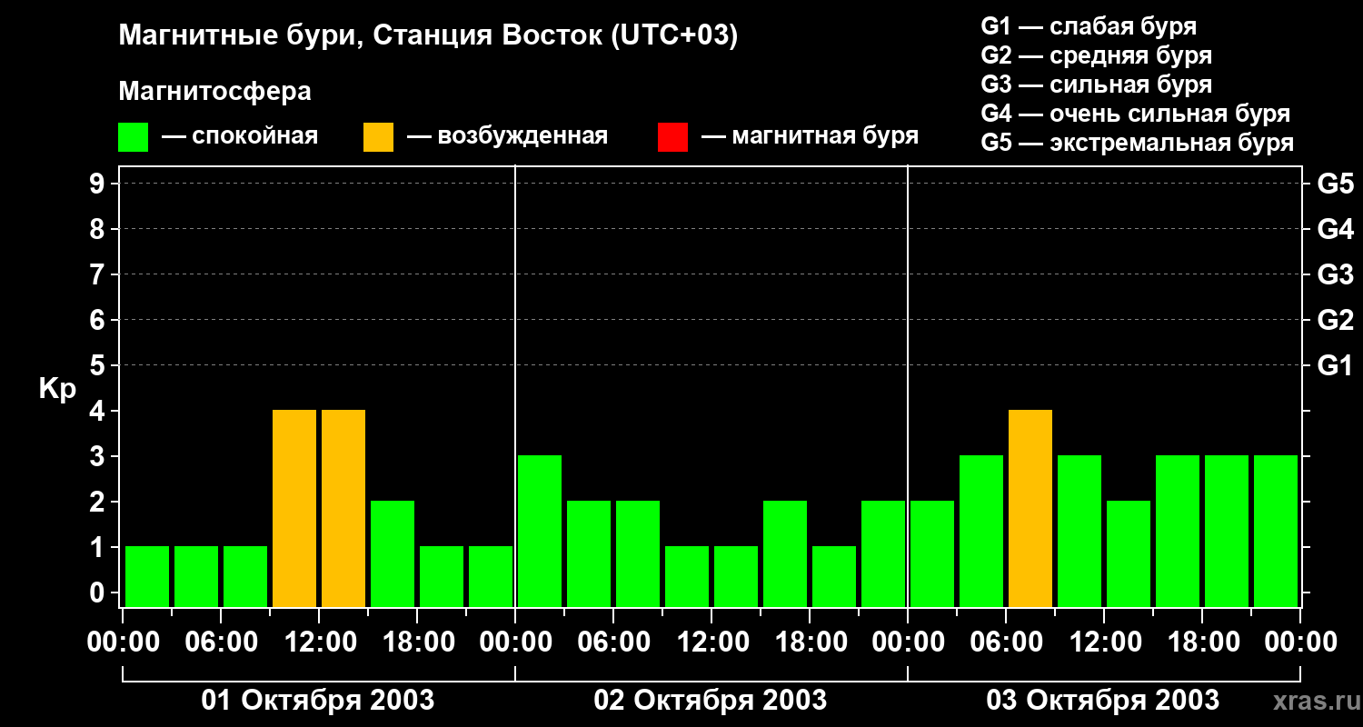Магнитные бури локации Станция Восток 3 октября 2003 года
