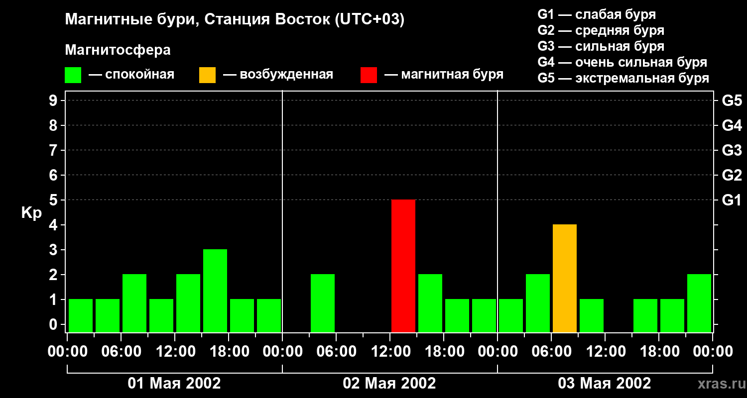 Магнитные бури локации Станция Восток — 3 мая 2002 года
