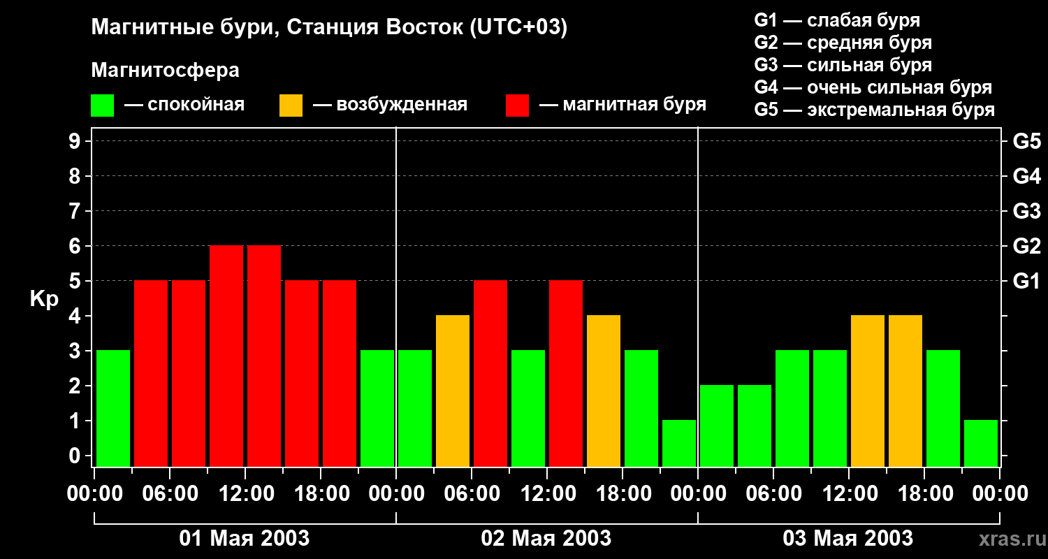 Магнитные бури локации Станция Восток — 3 мая 2003 года