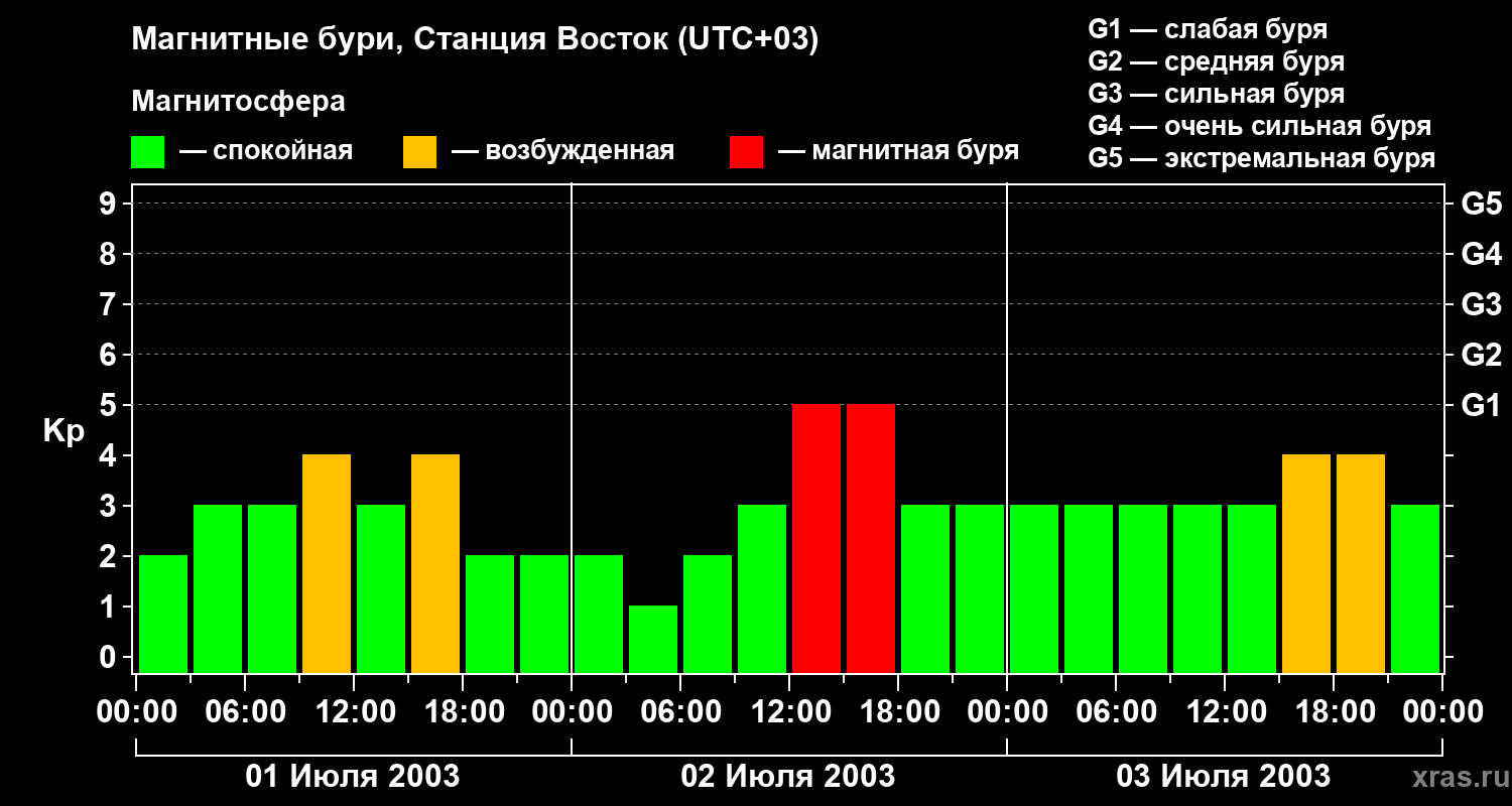 Магнитные бури локации Станция Восток — 3 июля 2003 года