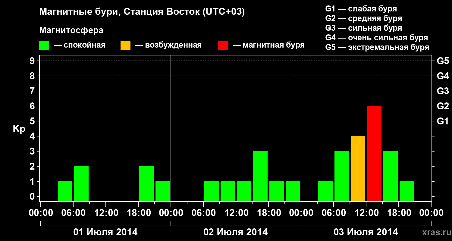 Магнитные бури локации Станция Восток — 3 июля 2014 года
