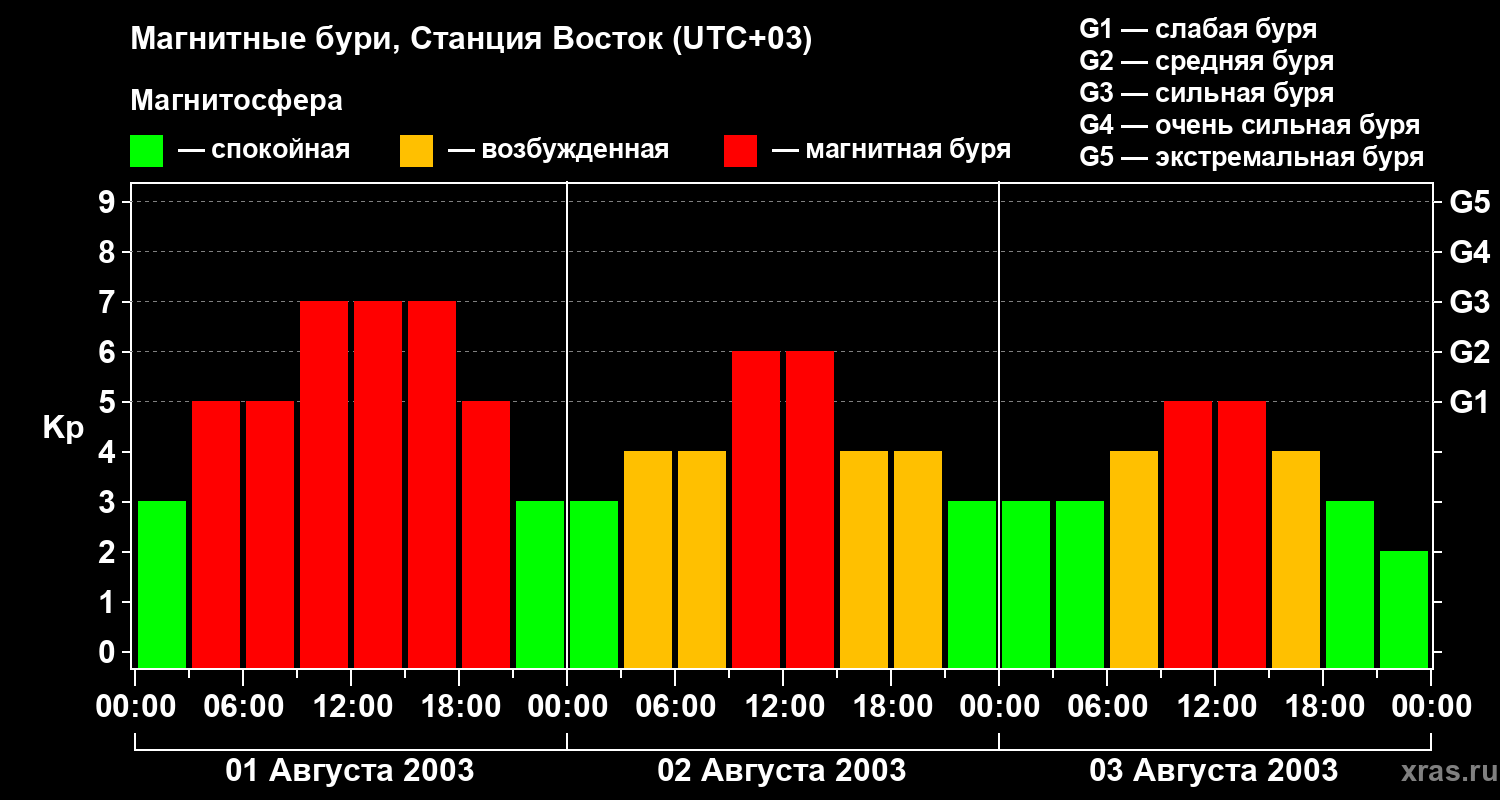 Магнитные бури локации Станция Восток — 3 августа 2003 года