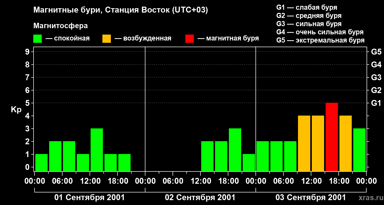 Магнитные бури локации Станция Восток — 3 сентября 2001 года