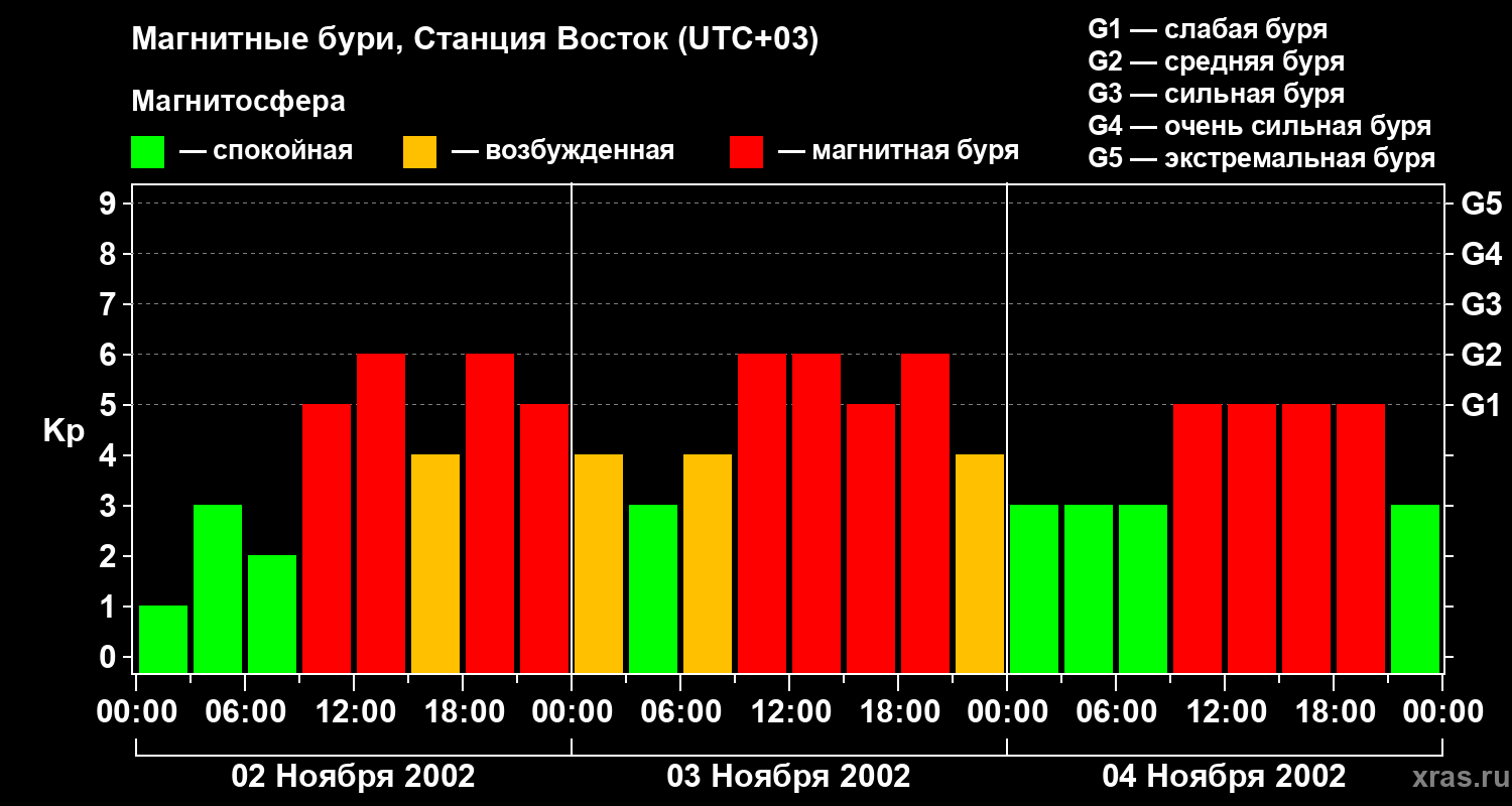Магнитные бури локации Станция Восток — 4 ноября 2002 года