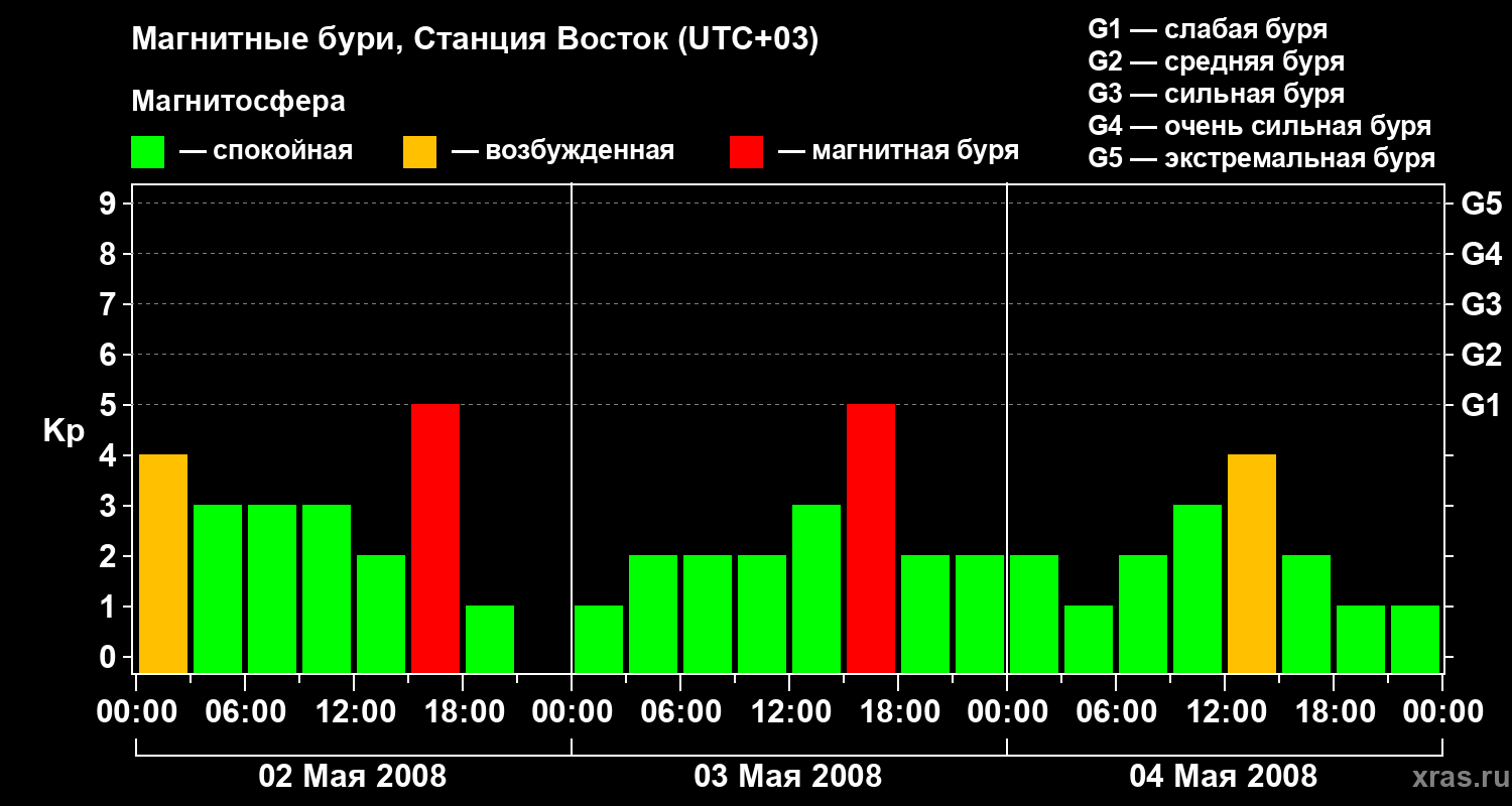 Магнитные бури локации Станция Восток — 4 мая 2008 года