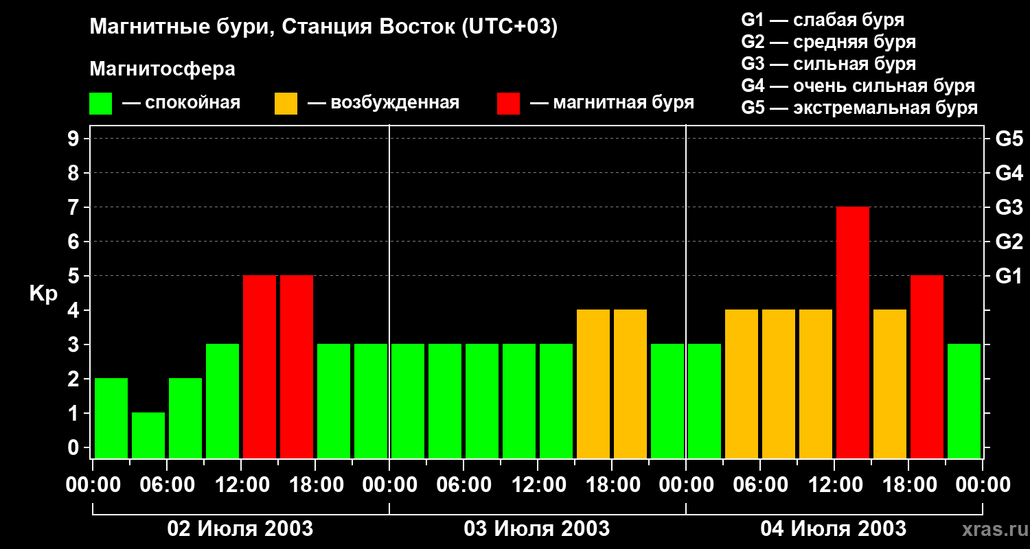 Магнитные бури локации Станция Восток — 4 июля 2003 года