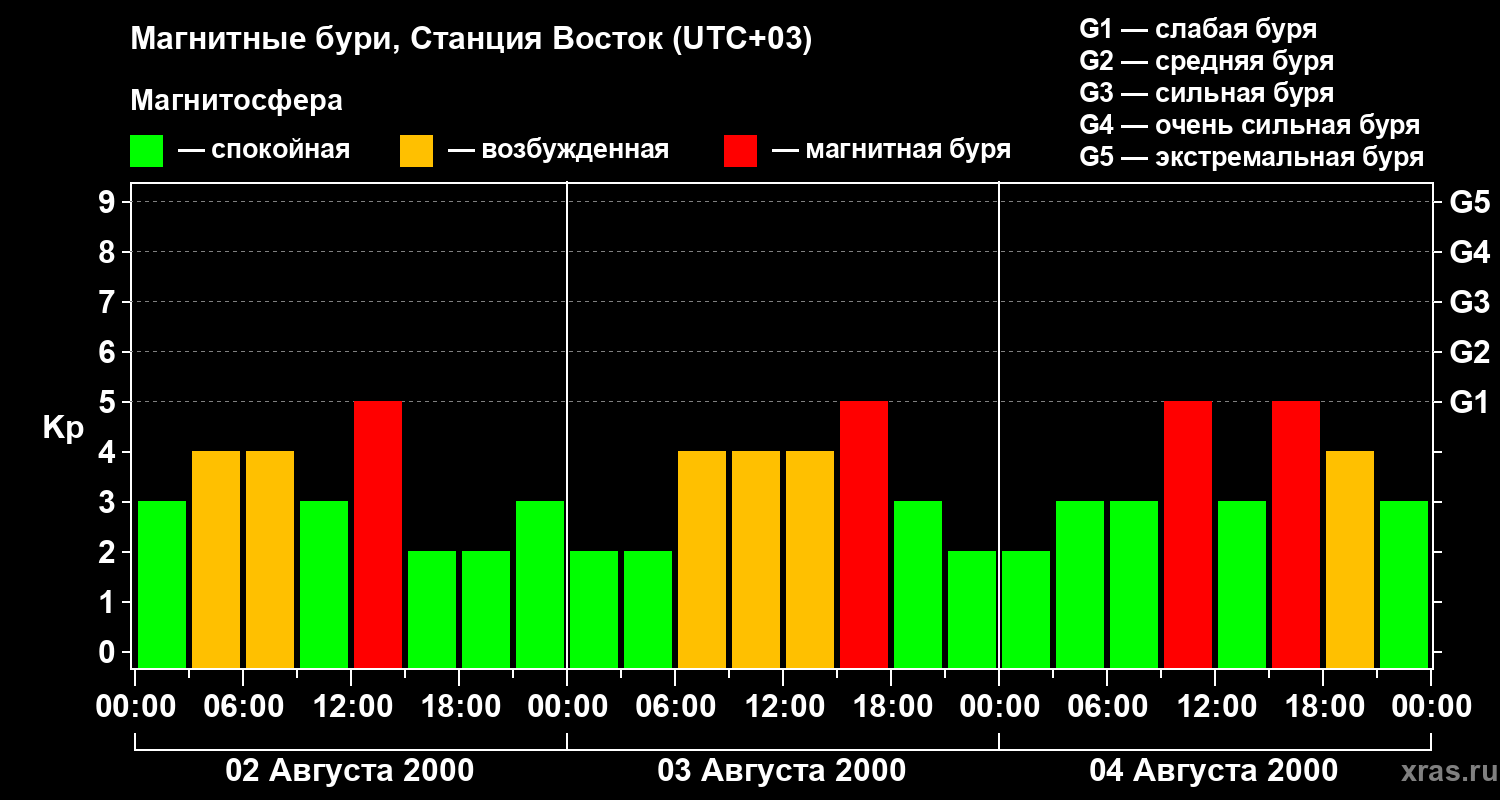 Магнитные бури локации Станция Восток — 4 августа 2000 года