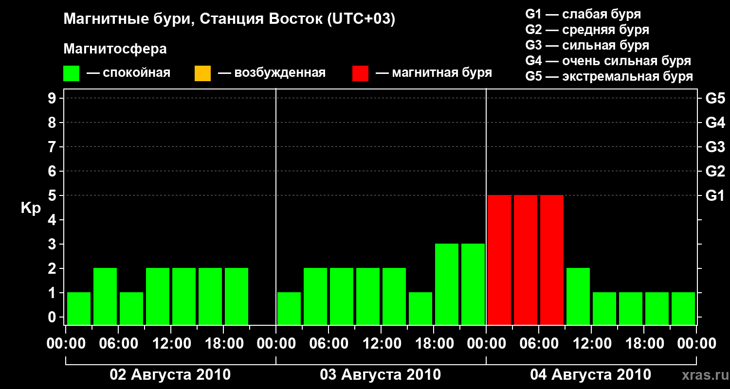 Магнитные бури локации Станция Восток — 4 августа 2010 года