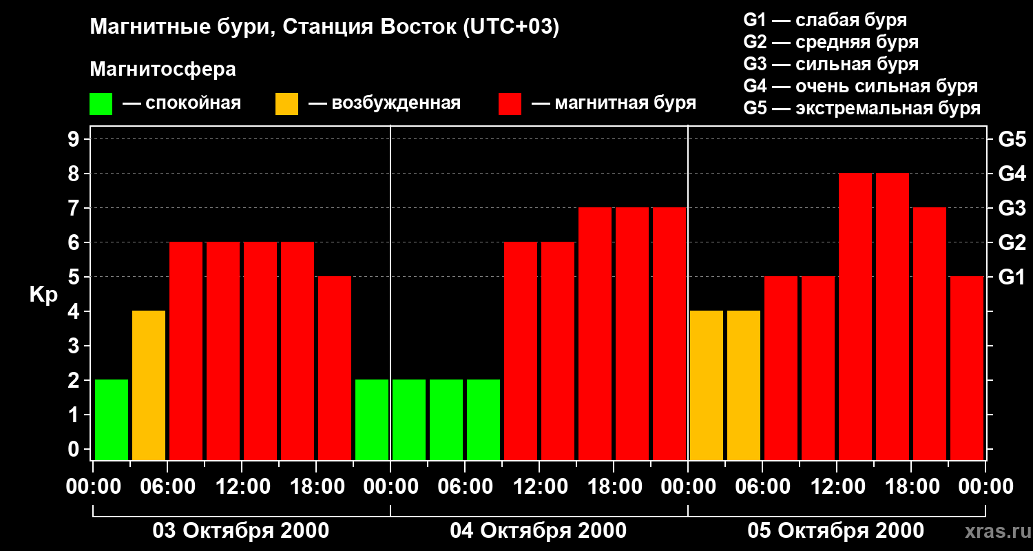 Магнитные бури локации Станция Восток — 5 октября 2000 года