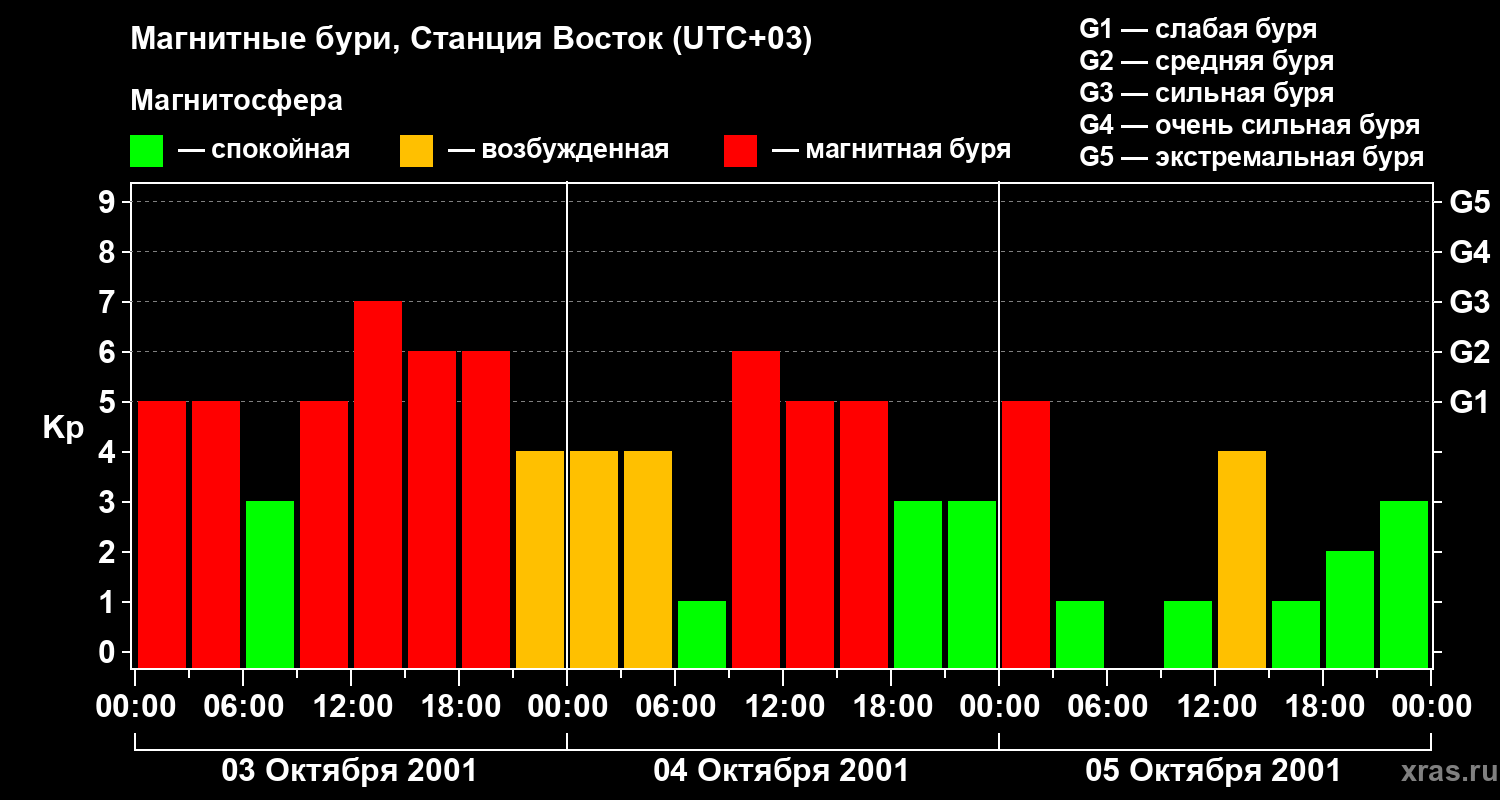 Магнитные бури локации Станция Восток — 5 октября 2001 года
