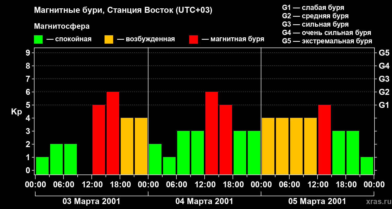 Магнитные бури локации Станция Восток — 5 марта 2001 года