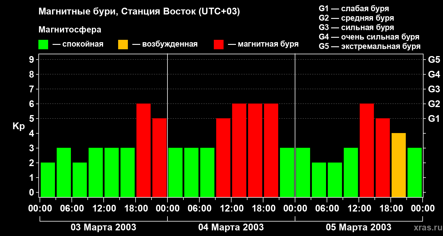 Магнитные бури локации Станция Восток — 5 марта 2003 года