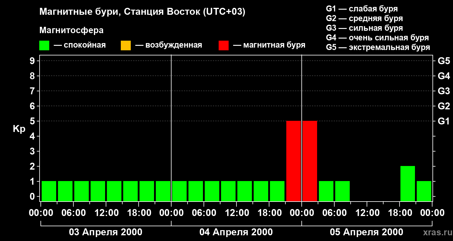 Магнитные бури локации Станция Восток — 5 апреля 2000 года