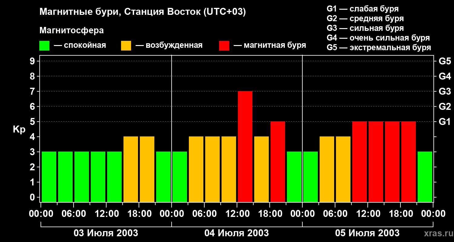 Магнитные бури локации Станция Восток — 5 июля 2003 года