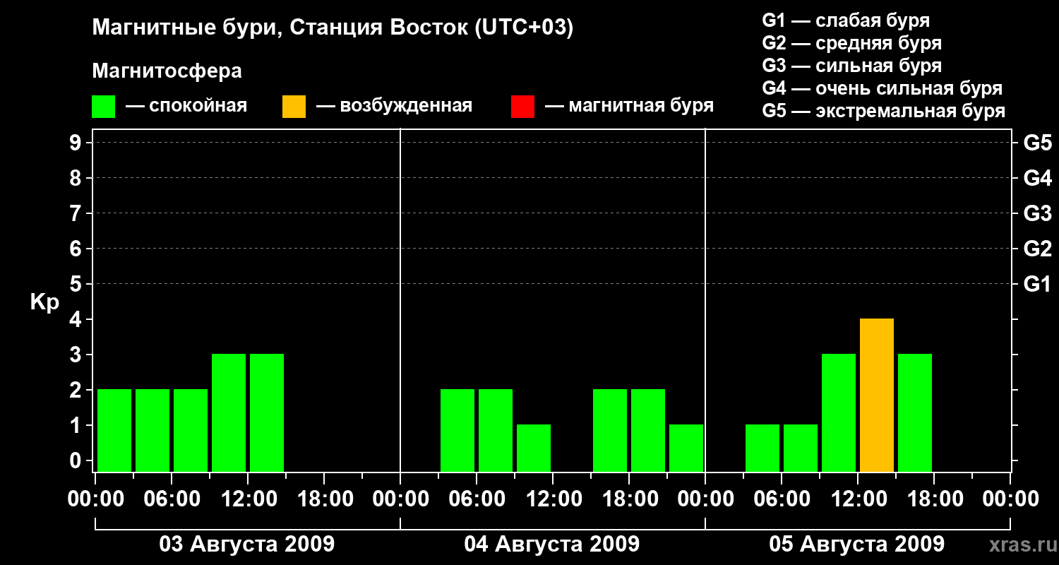 Магнитные бури локации Станция Восток — 5 августа 2009 года