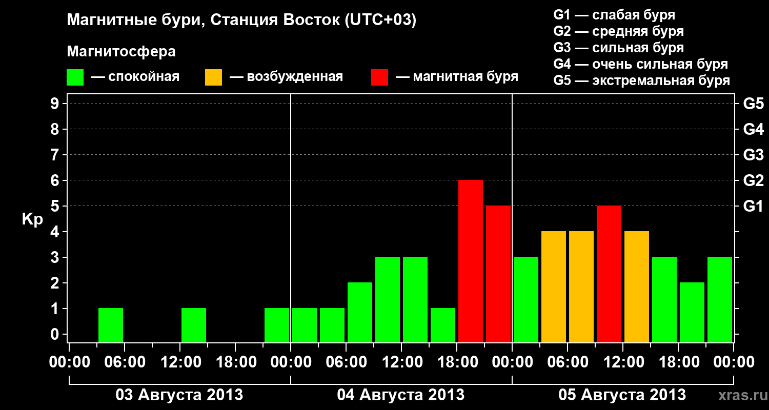 Магнитные бури локации Станция Восток — 5 августа 2013 года