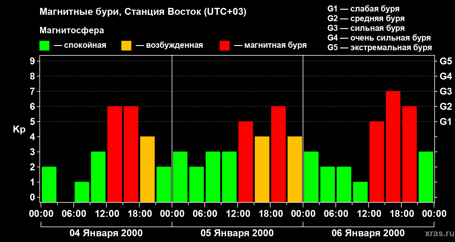 Магнитные бури локации Станция Восток — 6 января 2000 года