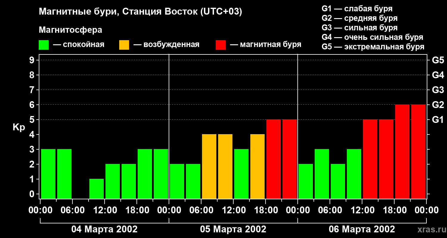 Магнитные бури локации Станция Восток — 6 марта 2002 года