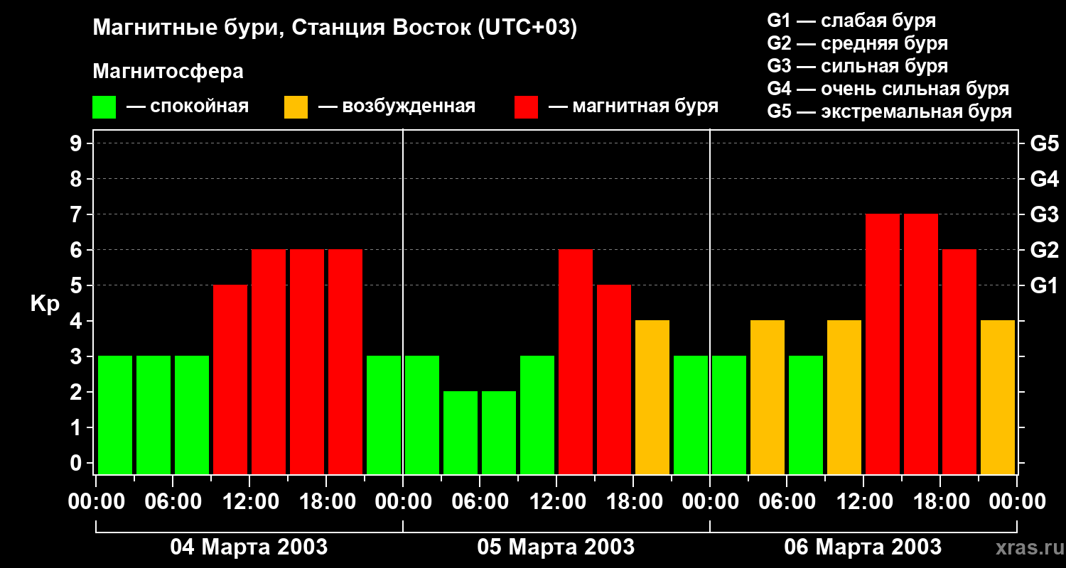 Магнитные бури локации Станция Восток — 6 марта 2003 года