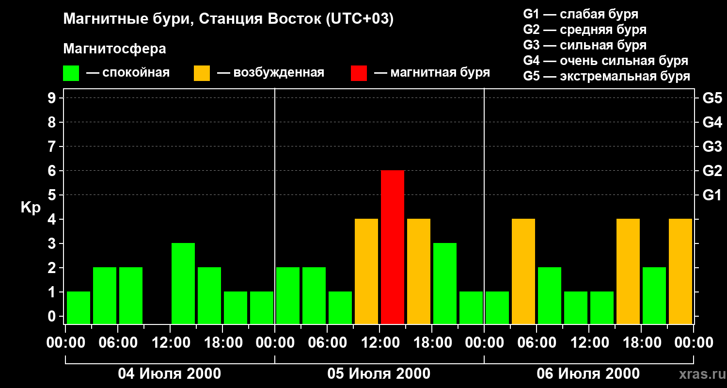 Магнитные бури локации Станция Восток — 6 июля 2000 года