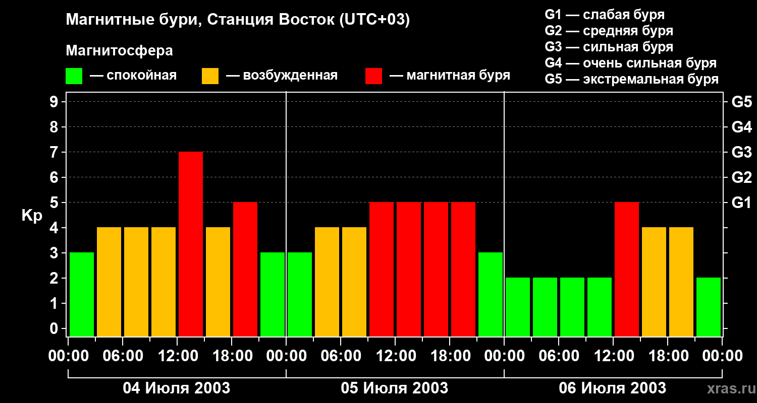 Магнитные бури локации Станция Восток — 6 июля 2003 года