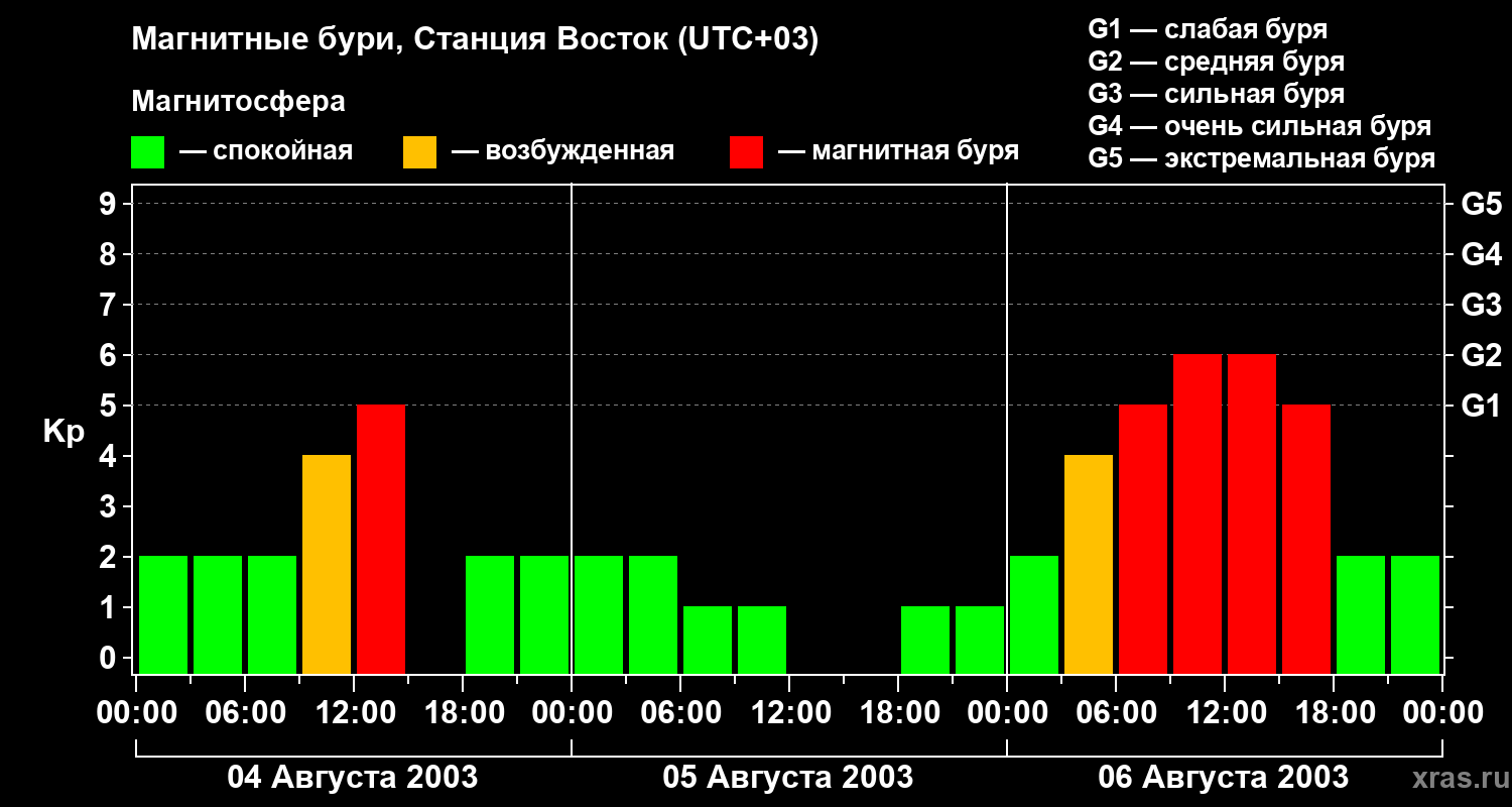 Магнитные бури локации Станция Восток — 6 августа 2003 года