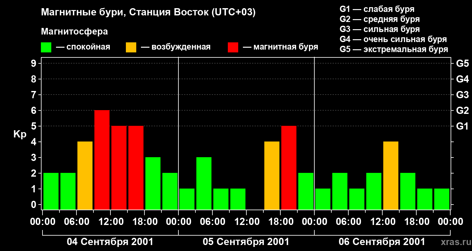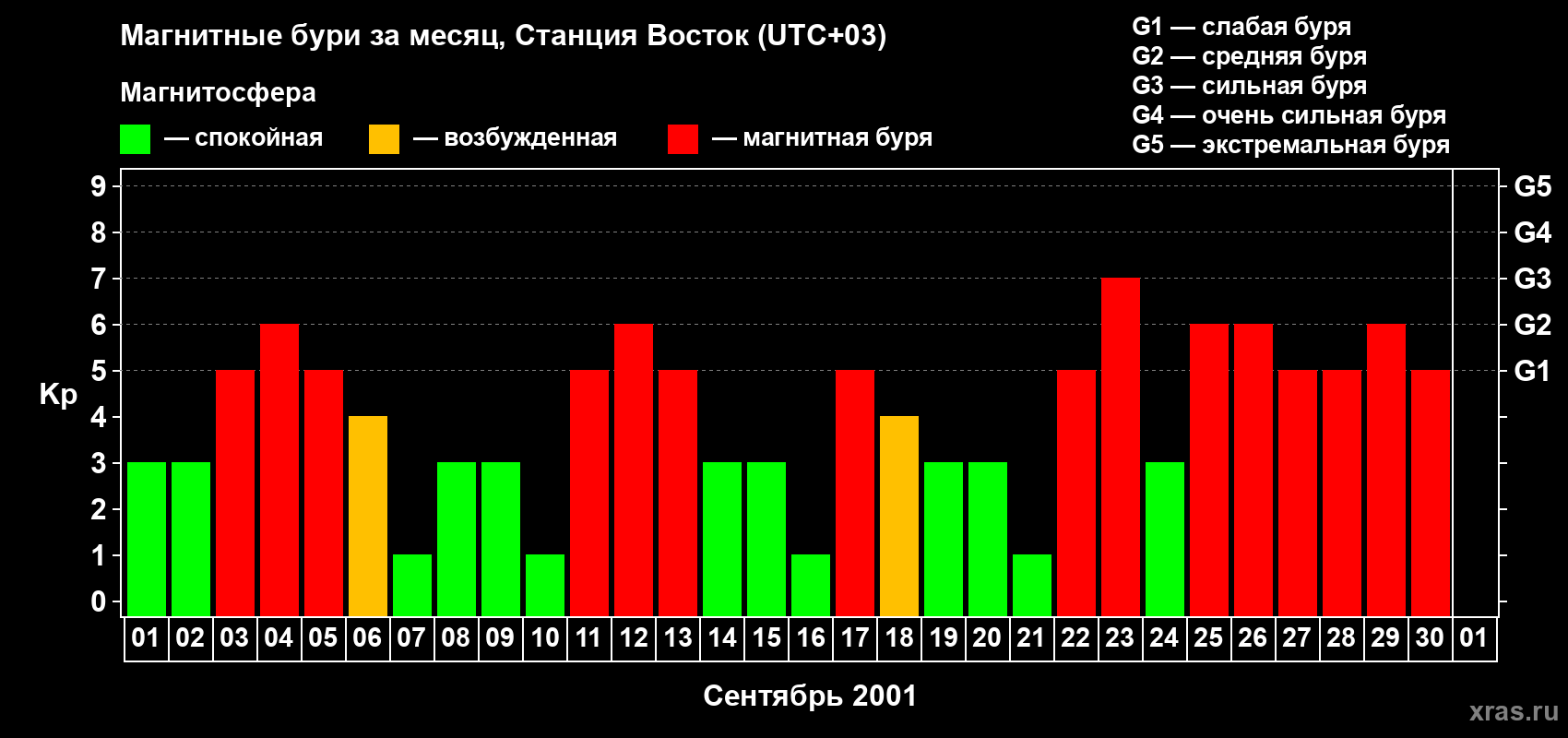 Магнитные бури локации Станция Восток в сентябре 2001 года