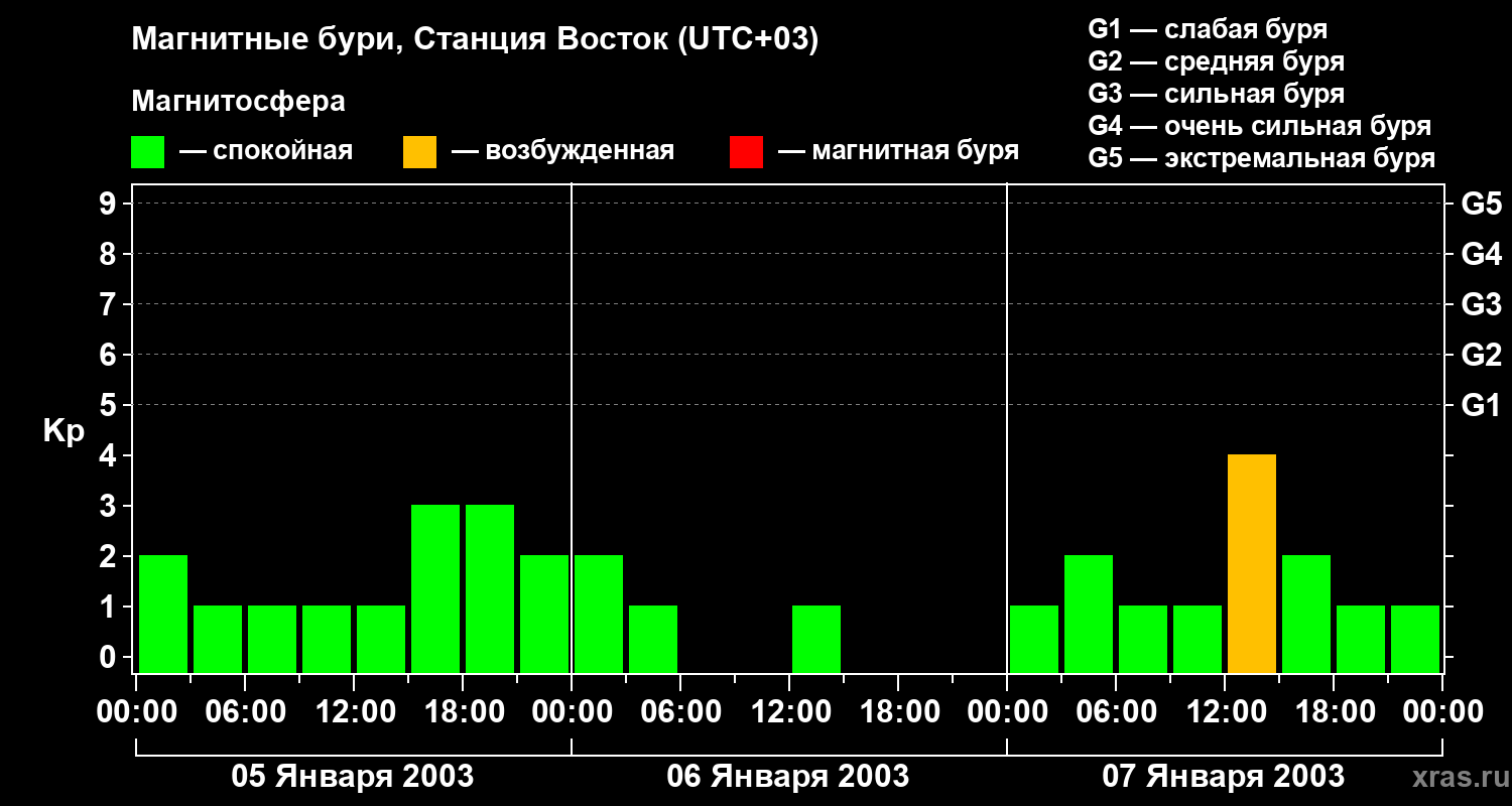 Магнитные бури локации Станция Восток — 7 января 2003 года