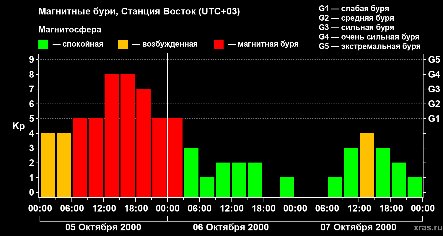 Магнитные бури локации Станция Восток — 7 октября 2000 года
