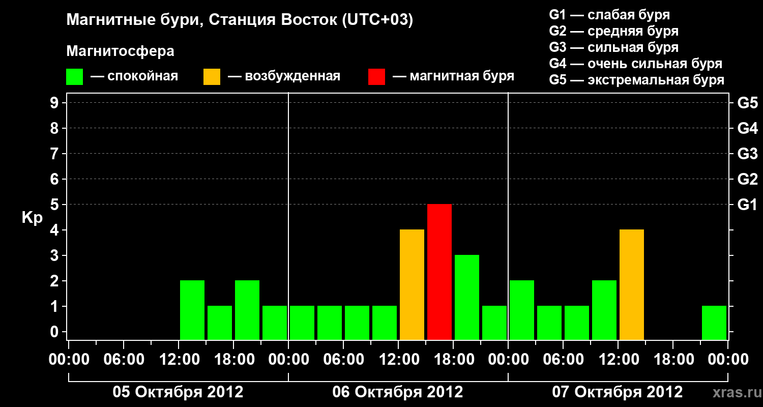 Магнитные бури локации Станция Восток — 7 октября 2012 года