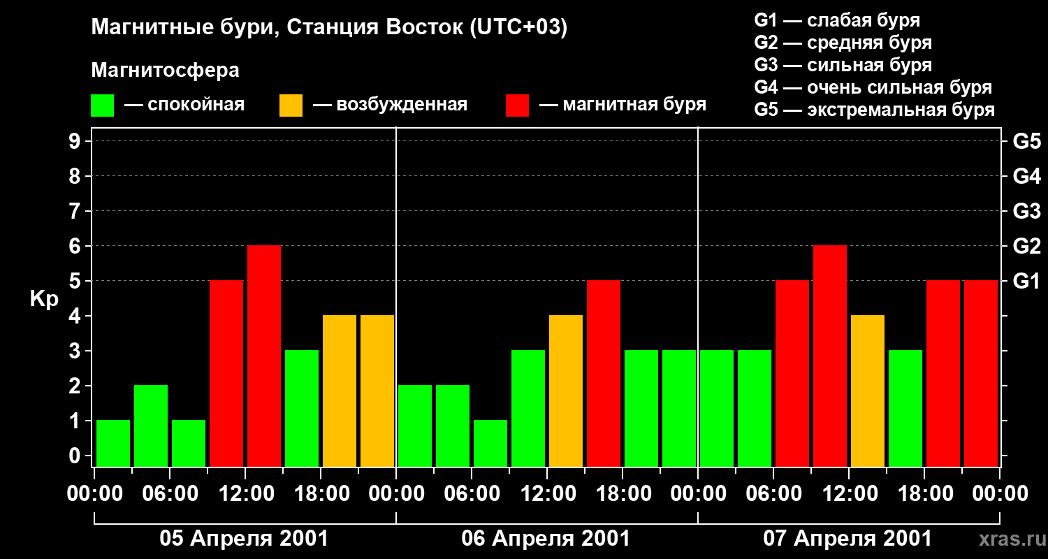 Магнитные бури локации Станция Восток — 7 апреля 2001 года