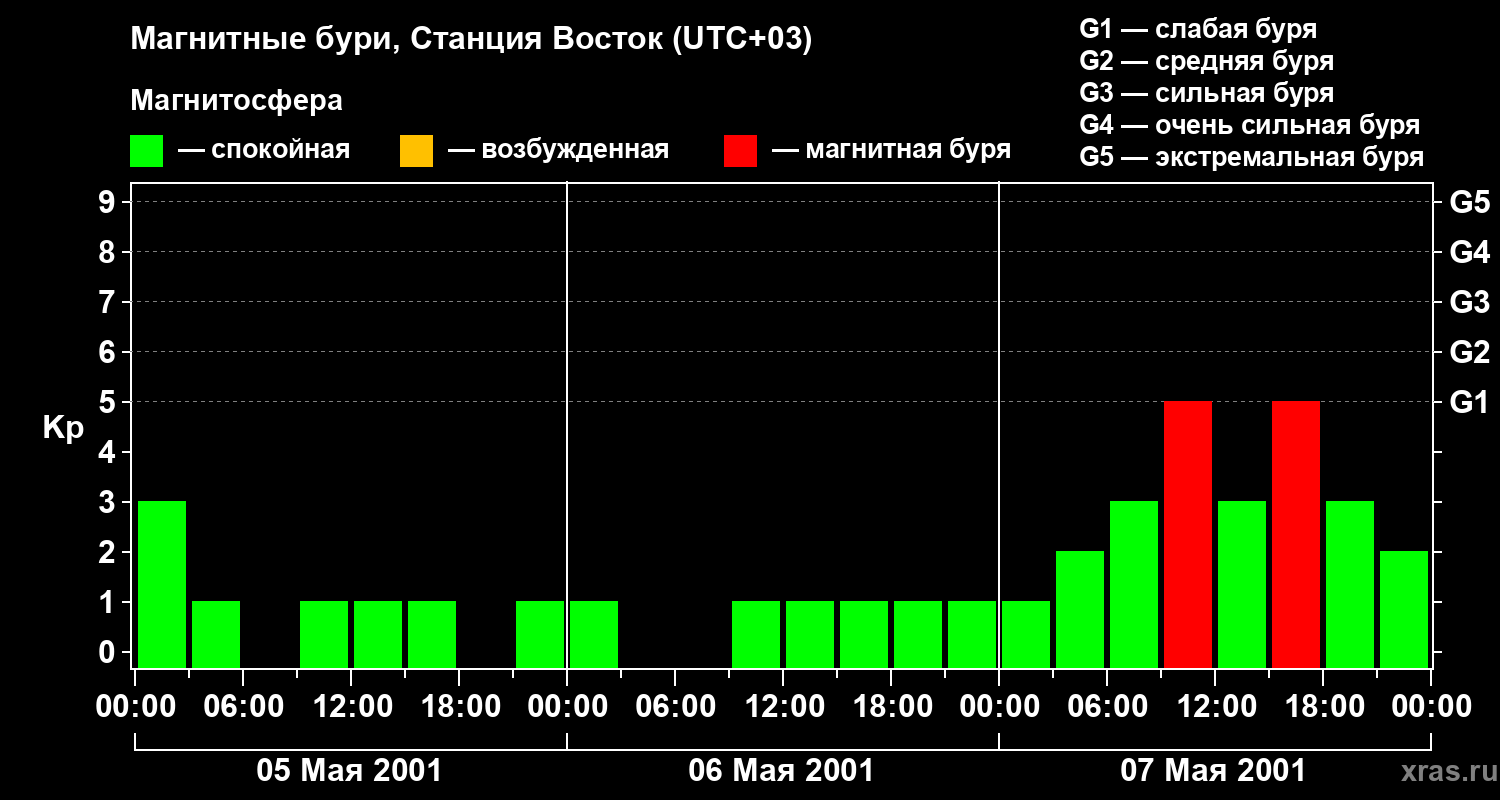 Магнитные бури локации Станция Восток — 7 мая 2001 года
