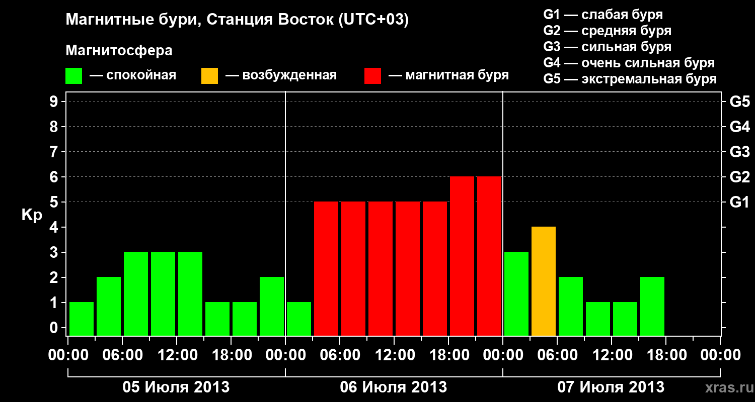 Магнитные бури локации Станция Восток — 7 июля 2013 года