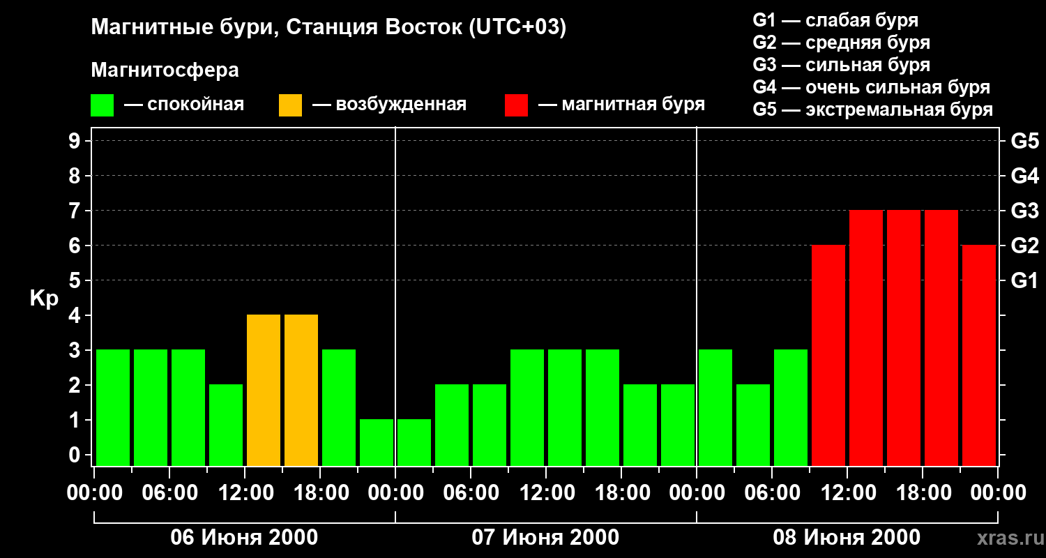 Магнитные бури локации Станция Восток — 8 июня 2000 года