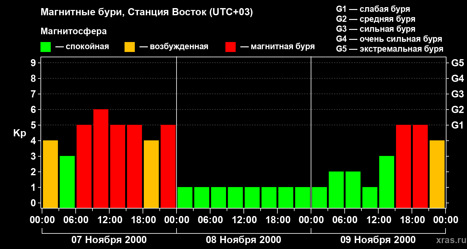 Магнитные бури локации Станция Восток — 9 ноября 2000 года